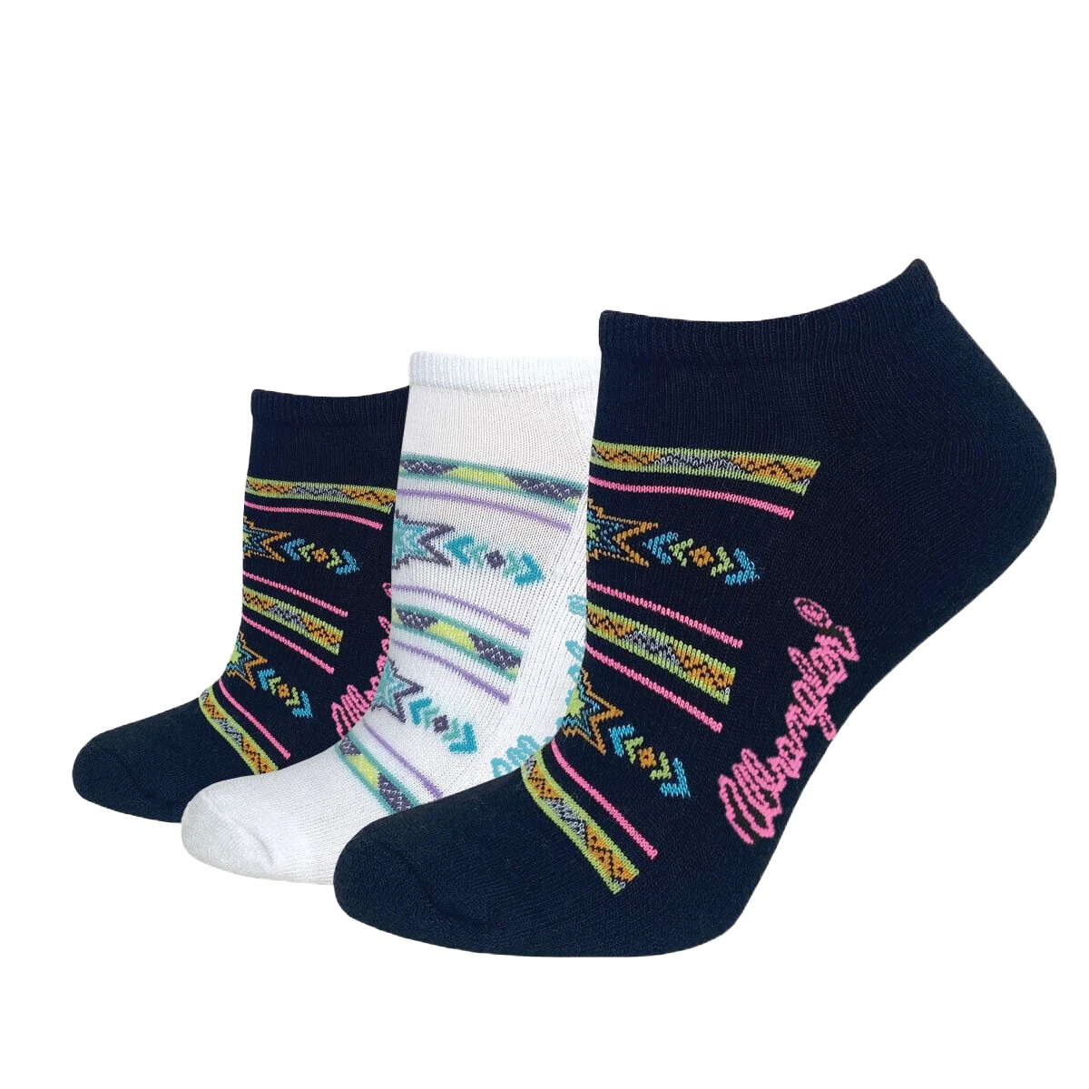 Wrangler® Ladies Aztec Seamless Toe Black & White 3-Pair Low Cut Socks 72873-7000-MED